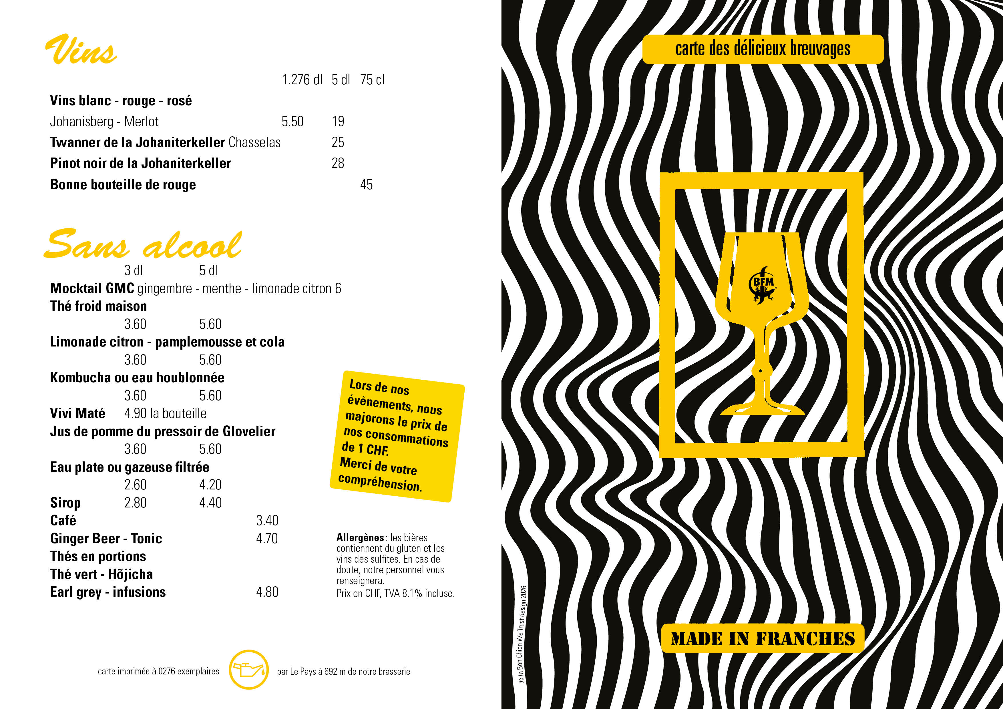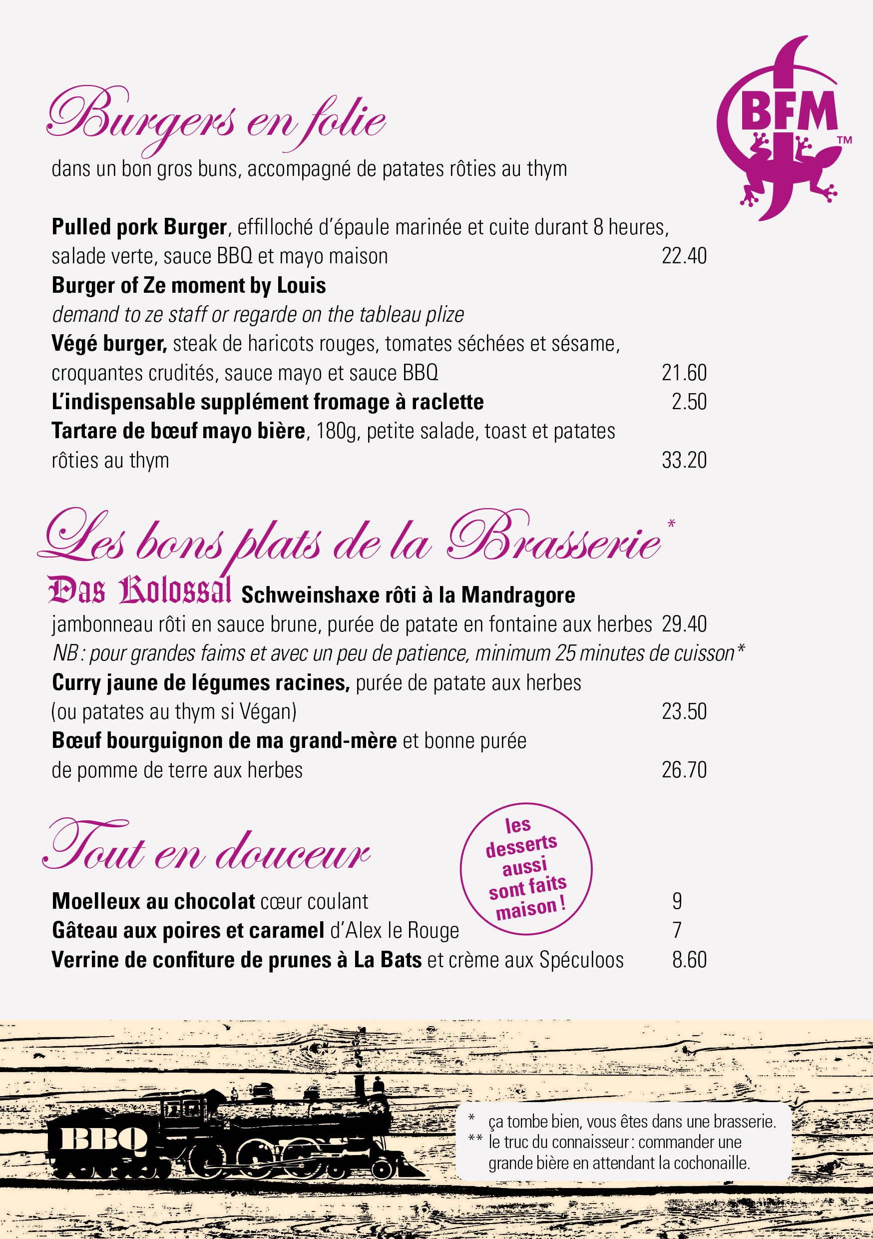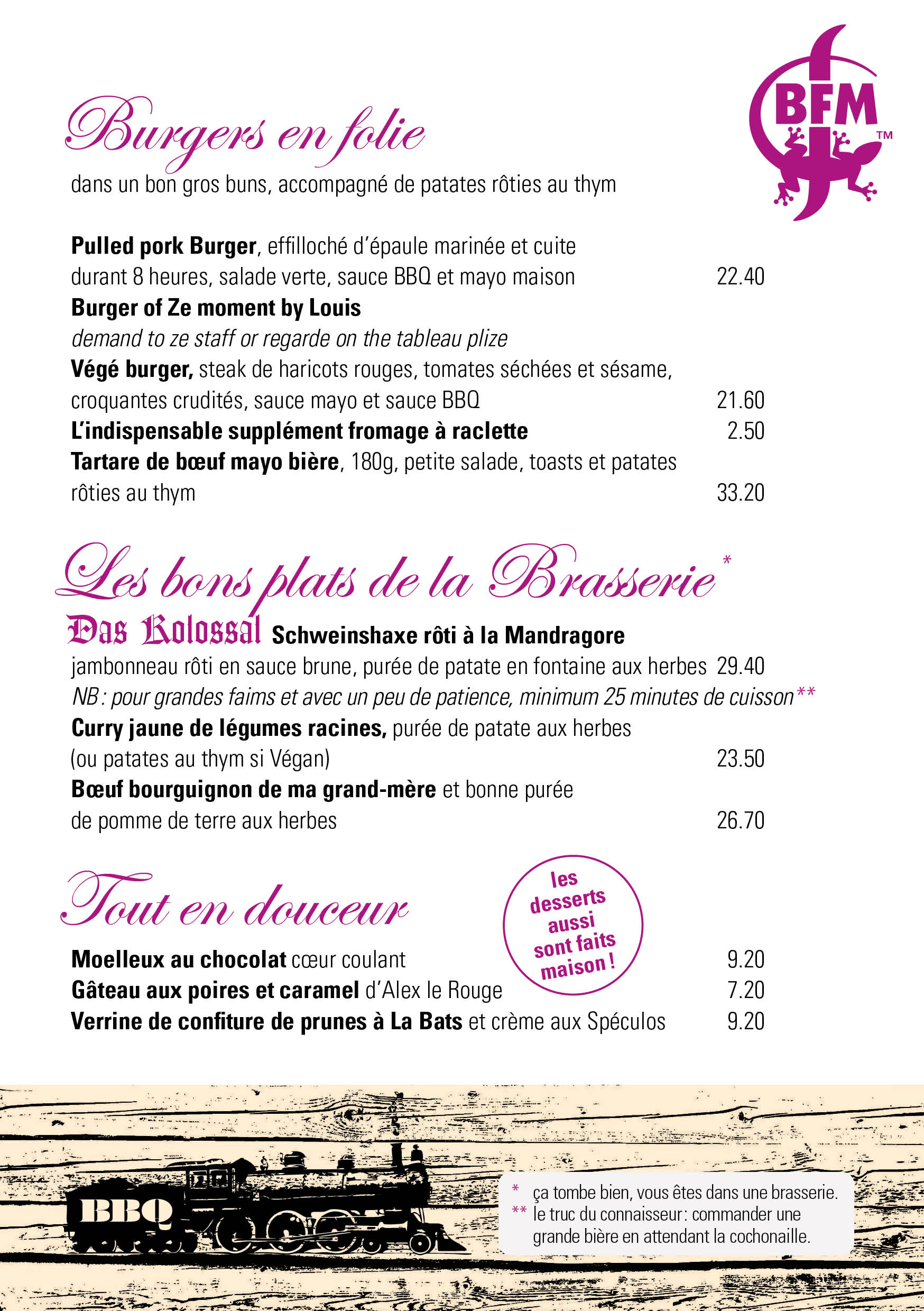 Mahlzeiten für Gruppen von 15 bis 276 Personennach vorheriger Reservierung unter 032 951 20 12 oder visit@brasseriebfm.ch oder über das Kontaktformular